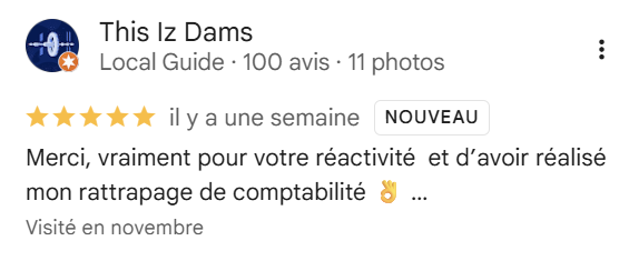 Tu bénéficies d’un suivi comptable et fiscal sur toute l’année, avec rattrapage de dossiers, conseils personnalisés et une vraie réactivité au téléphone comme par mail.
